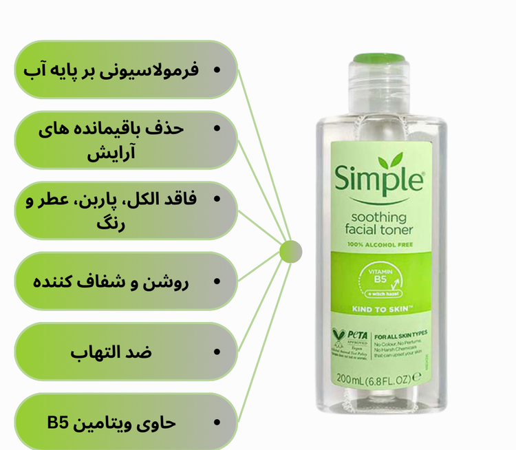 کاربرد: حذف باقیمانده میکاپ، تنظیم PH پوست و جلوگیری از جوش زدن